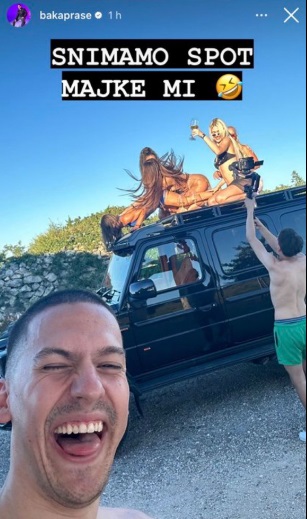 Posebno je zapala za oko scena gde se grupa devojaka nalazi na automobilu, sa čašama pića u rukama, dok Baka Prase nije skidao osmeh sa lica. U opisu jedne od fotografija napisao je: „Snimamo spot, majke mi“ i dodao emotikone koji umiru od smeha, što je izazvalo lavinu komentara i spekulacija među njegovim pratiocima. Mnogi su se pitali da li zaista snima novi muzički spot ili je u pitanju samo još jedan od njegovih šala.