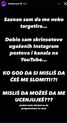 – Saznao sam da me neko targetira… Dobio sam skrinšotove ugašenih postova na Instagramu i kanala na Jutjubu – napisao je on, a onda se obratio toj osobi: