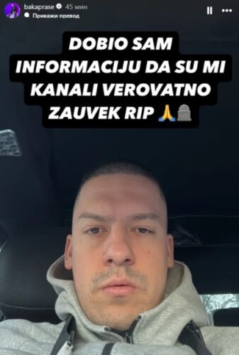 „Dobio sam informaciju da su mi kanali verovatno zauvek rip“, napisao je Baka Prase.