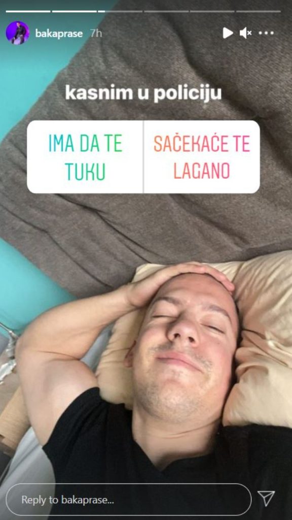 Bogdan se oglasio i putem svog Instagram profila, objavivši selfi iznad kog je napisao da „kasni u policiju“, a potom dodao još jednu fotografiju iz lifta svoje zgrade neposredno pred saslušanje.
