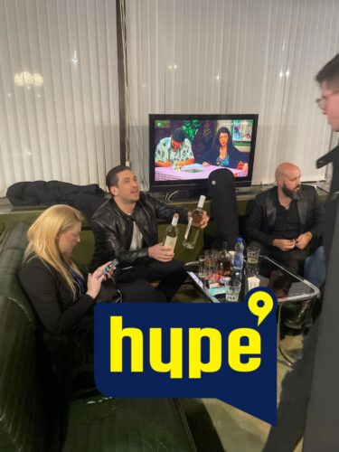 Bane sa svojim timom kombinuje viski i vino dok čeka svoj red da izvede pesmu.
