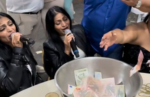 Na jednoj privatnoj proslavi, pevačice Slađana i Suzana Vasić, poznatije kao Barbike, a sudeći po punoj posudi novčanica ispred njih, i zaradile ozbiljan bakšiš.