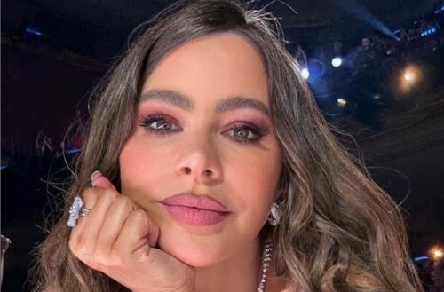 U kožnoj haljini bez bretela, koja je istakla njenu vitku figuru i naglasila bujni dekolte, Vergara je izgledala besprekorno.