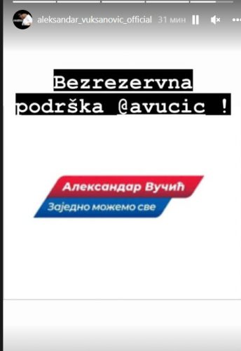 On je na svom Instagram profilu napisao Bezrezervna podrška i tagovao Vučića.