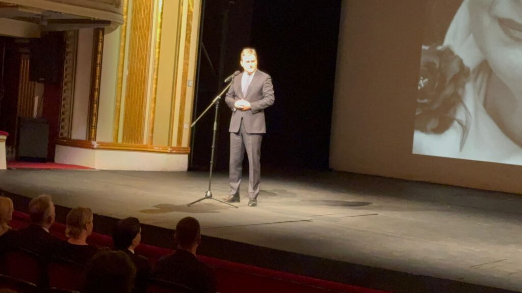 Ministar kulture Nikola Selaković na komemoraciji povodom smrti Radmile Živković drži govor. Njegove reči su sve prisutne rasplakale.