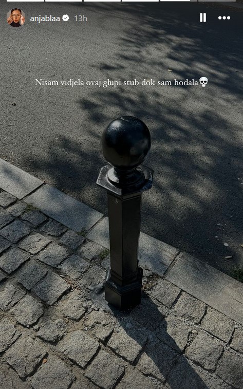 – Nisam videla ovaj glupi stub dok sam hodala – napisala je Anja na Instagram profilu. I tako na neki način razjasnila da je svom silinom udarila u stub na ulici, da je dobila toliku modricu. A bol je bio toliki da je mislila u prvi mah da je noga slomljena. Ipak njenom srećom, prošla je sa modricom, odnosno masnicom.