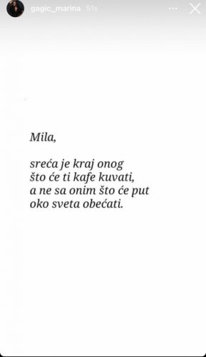 – Sreća je kraj onog što će ti kafe skuvati, a ne sa onim što će put oko sveta obećati – pisalo je u njenoj objavi.