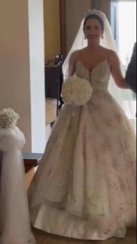 Andrijana je blistala u prelepoj beloj venčanici, a njen patner bio je u elegantnom sivom odelu. Pevačica nije krila svoju sreću, te nije skidala osmeh s lica, kao i njen partner.