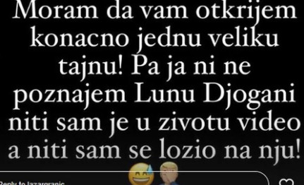 -Moram da vam otkrijem konačno jednu veliku tajnu! Pa ja ni ne poznajem Lunu Đogani, niti sam je u životu video, niti sam se ložio na nju – poručio je Granić putem Instagrama.