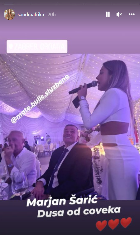 Goste je zabavljao Mate Bulić i srpska folk pjevačica Sandra Afrika. Pomalo neobična muzička kombinacija ali zvanice su se, sudeći po storijima na Instagramu, i više nego odlično zabavili.