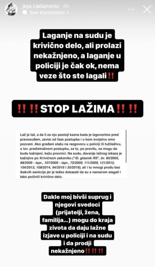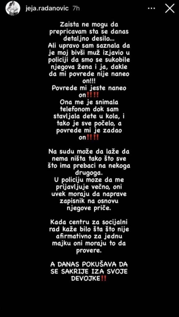 Ona se potom osvrnula i na događaj od juče gde je zadobila povrede nakon napada bivšeg supruga.