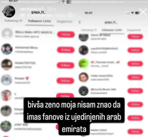 Savković sada smatra da njegova bivša supruga koristi popularnost koju je stekla preko njega, te da kupuje pratioce na pomenutoj društvenoj mreži.