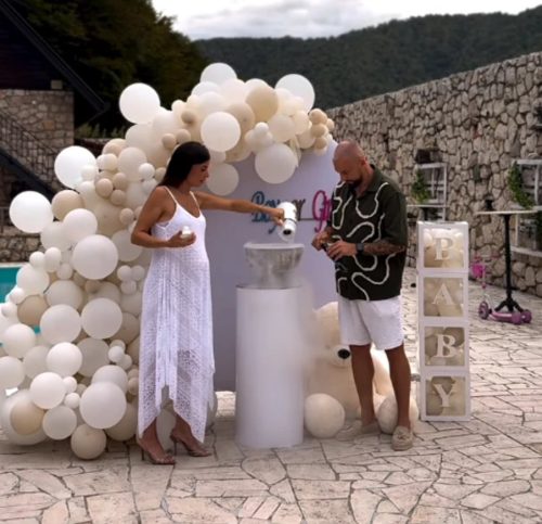 Proslava je upriličena pored bazena, uz balone, dekoraciju u plavim tonovima i plišane igračke, a ključni trenutak, kada je otkriven pol deteta, izazvao je oduševljenje prisutnih. U trenutku kada je plava boja potvrdila da je u pitanju dečak, ponosni roditelji su ushićeno skakali i grlili se.