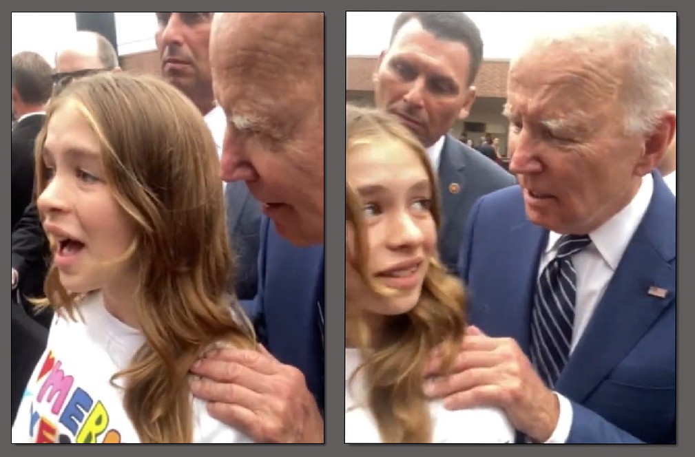 President Joe Biden grabs a young girl by the shoulder and tells her “no serious guys till your 30” as she looks back appearing uncomfortable, secret service appears to try to stop me from filming it after Biden spoke @ Irvine Valley Community College | @TPUSA @FrontlinesShow pic.twitter.com/BemRybWdBI