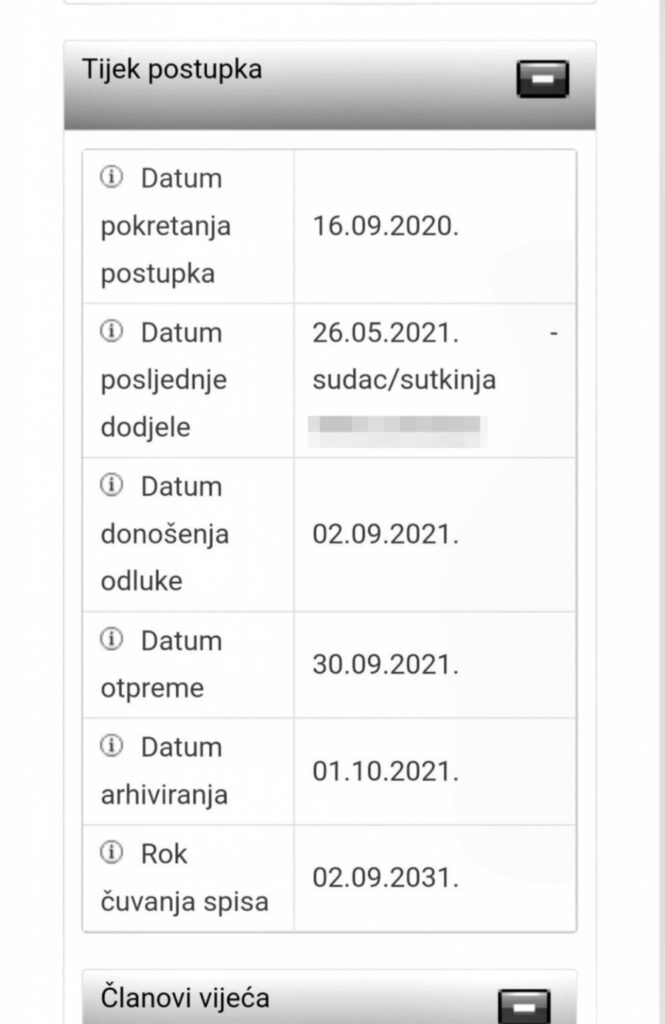 U prilog ovoj činjenici govore i podaci koji su javno dostupni na sajtu suda, a u kojima se vidi da je slučaj i dalje otvoren.