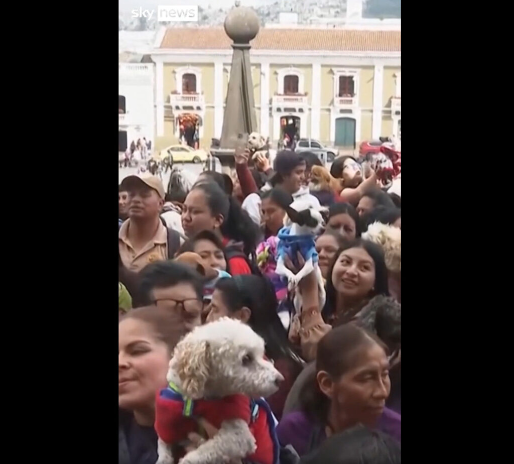 U srcu male zajednice, mesta Kuito u Republici Ekvador, ispred lokalne crkve, nesvakidašnji prizor okupio je stanovnike i njihove ljubimce.