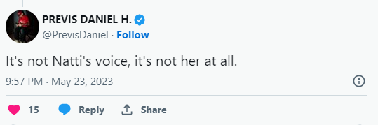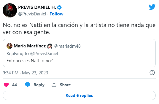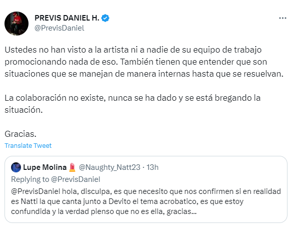 – Niste mogli da vidite umetnicu, niti bilo koga iz njenog tima da promoviše pesmu. Kolaboracija ne postoji i situacija se rešava – napisao je Danijel na Tviteru, a nakon što je sledeća korisnika tražila konkretnu potvrdu da li je u pitanju Nati ili ne, odgovorio je: