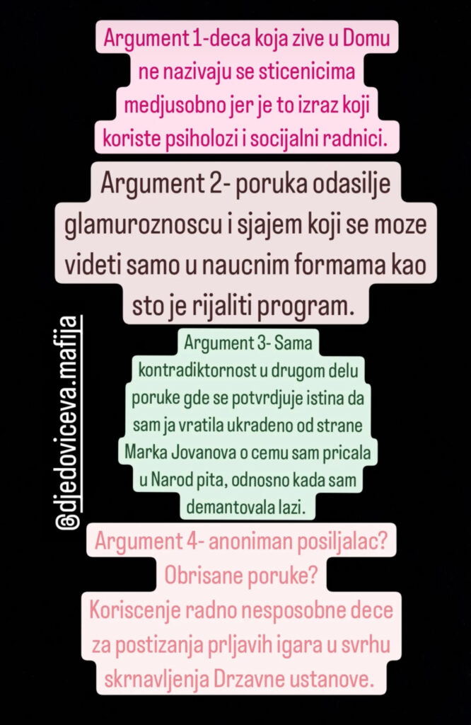 Koriscenje radno nesposobne dece za postizanja prljavih igara u svrhu skrnavljenja Drzavne ustanove.”, napisala je Bojana demantujući da je ovo navodno osoba koja je bila sa njom u domu.