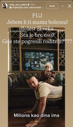 „J***m li ti mamu bolesnu! Bolest 21. veka. Šta je bre ovo, gde ste pogrešili roditelji?!“, upitala je napisala je Indi, šokirana onim što vidi.
