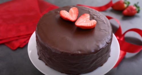 U šerpi skuvajte čokoladu, vodu i šećer. Ostavite da se prohladi, pa time prelijte tortu. Ostavite u frižideru da odstoji preko noći. Po želji dodati jagode na vrhu.