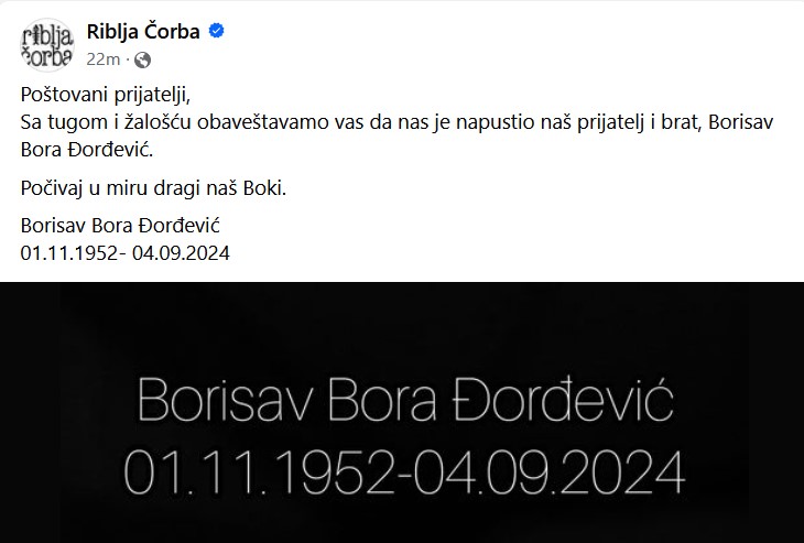 Na zvaničnoj stranici grupe Riblja Čorba, na Facebook- u okačeno je saopštenje: