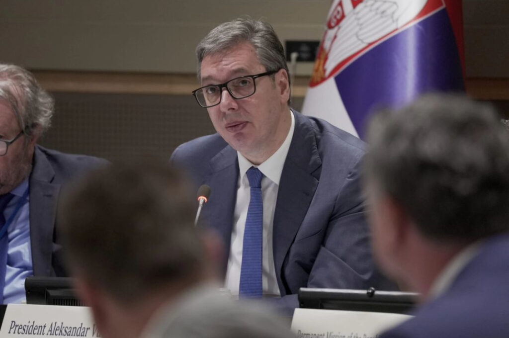 Predsednik Republike Srbije Aleksandar Vučić na panel diskusiji. „Mi govorimo, jer oni ne mogu – glasovi koje treba čuti“ – Svedočanstva svedoka žrtava rata u BiH.