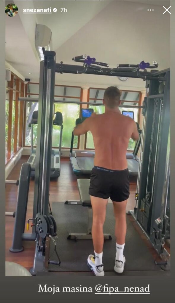 Iako se svakodnevno hvali preplanulim telom i različitim kupaćim kostimima, promovišući ljubav s mužem i red trbušnjaka, snimila je i mladog frajera, zgodnog, koji trči pored nje, vežba u teretani i aktivno provodi vreme na sunčanim Maldivima.
