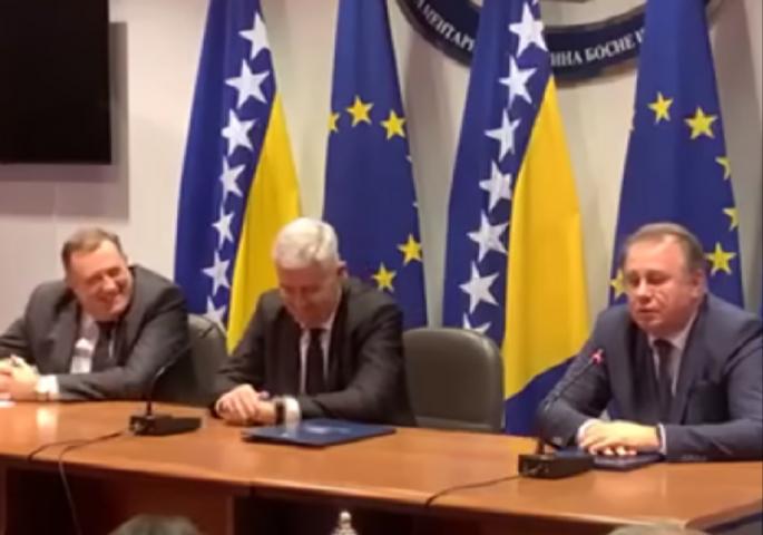 Juče je održan sastanak predstavnika vlasti na nivou BiH na kojem su prisustvovali Milorad Dodik (SNSD), Radovan Višković (SNSD), Nenad Stevandić (Ujedinjena Srpska), Dragan Čović (HDZ BiH) i šefovi stranaka „trojke“ Nermin Nikšić (SDP), Elmedin Konaković (NiP) i Edin Forto (NS).
