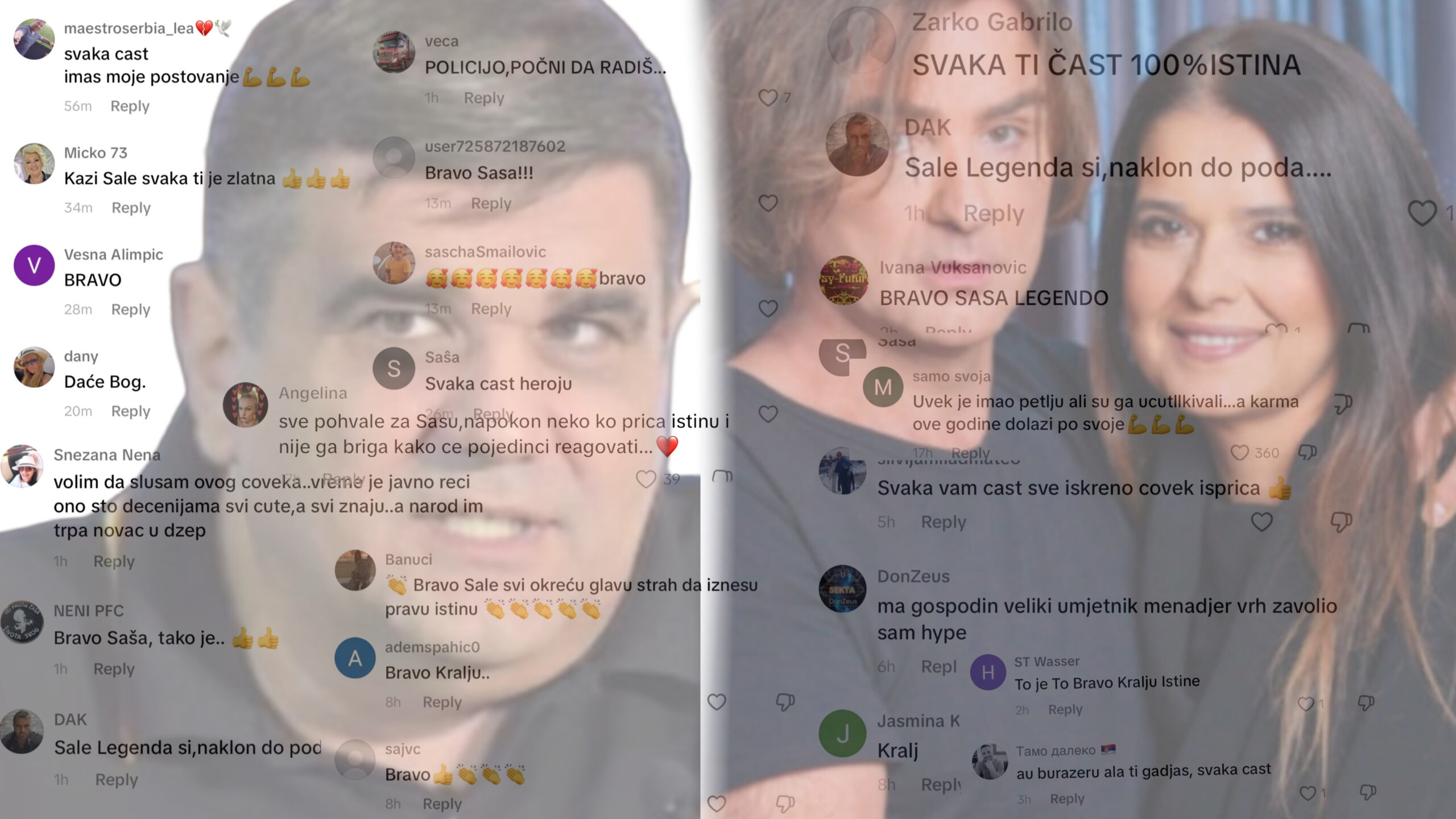 “Bravo, Sale, tako je! Bravo Saša, svi okreću glavu strah ih da iznesu pravu istinu! Sale Legenda, naklon do poda! Svaka Vam čast sve iskreno čovek ispriča! Bravo Saša Legendo”, samo su neki od komentara.