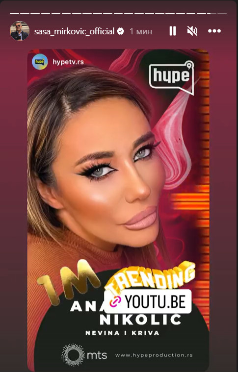 -Trending. 1M – napisao je on uz Aninu fotografiju i numeru „Nevina i kriva“