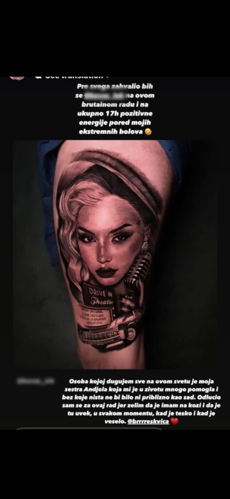 U emotivnom opisu, Mateja je otkrio da je tetovaža trajala 17 sati i da je odlučio da je ima na koži kako bi mu bila podrška u svim životnim trenucima.