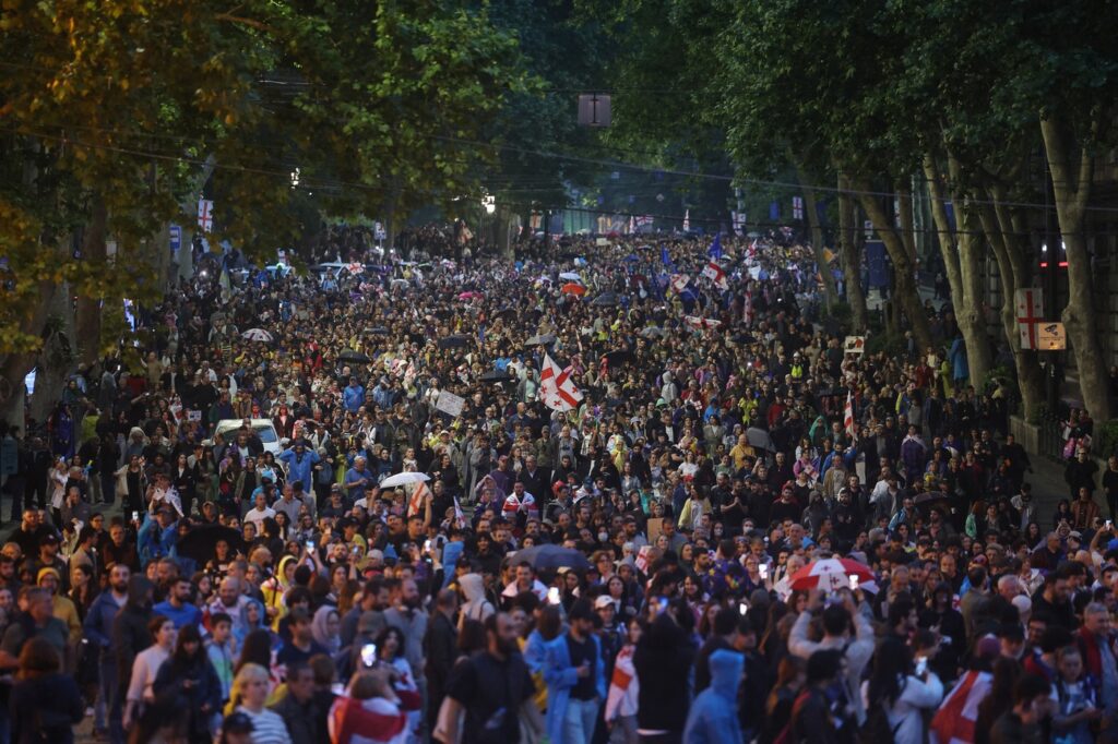 Policijski helikopter je lebdeo iznad glave dok je pojačanje u opremi za nerede jurilo da kontroliše protest. Bio je raspoređen biber sprej.