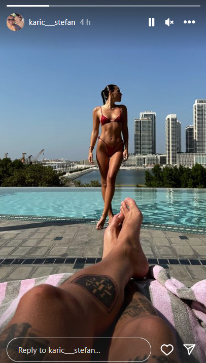 Reč je o fotografiji na bazenu, gde se u krupnom planu vidi izvajano telo njegove devojke, dok se njemu vide samo noge.