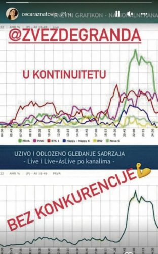 – „Zvezde Granda” u kontinuitetu. Bez konkurencije – napisala je ona preko slikovnog prikaza gledanosti popularnog muzičkog takmičenja.