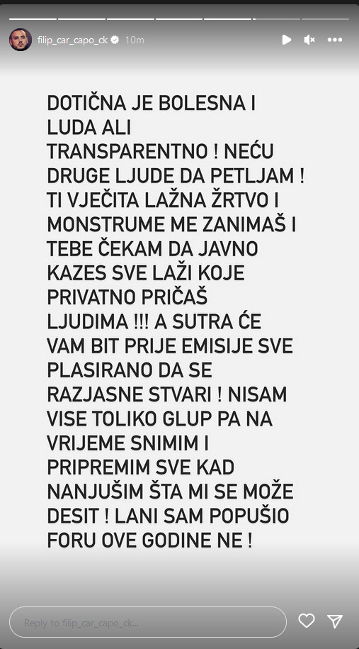 Zatim je u najnovijem storiju nazvao monstrumom i lažnom žrtvom, te napisao da je luda i bolesna!