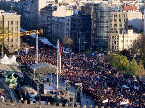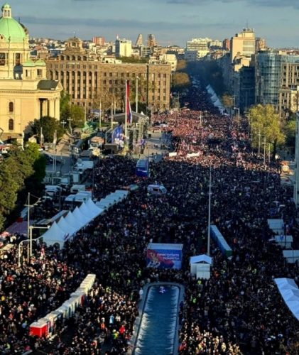 Na skup je stigao veliki broj građana iz cele Srbije. Među njima i Srbi sa Kosova i Metohije, a duge kolone ljudi i dalje se slivaju ka Domu narodne skupštine.