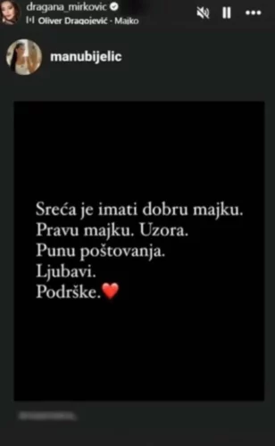 – Sreća je imati dobru majku. Pravu majku. Uzora. Punu poštovanja. Ljubavi. Podrške – glasila je njena poruka upućena Dragani.