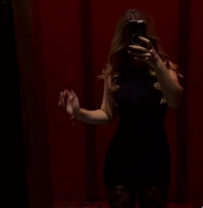 Lena je obukla mini crnu haljinu, koju je uparila sa čipkastim čarapama, želeći da zadrži sofisticiran, ali mladalački izgled.