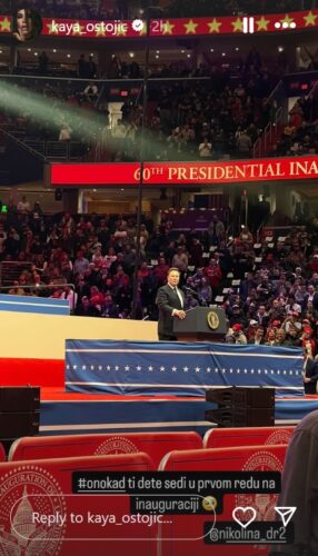 Kaja je sada, na Instagramu, objavila fotografije njene ćerke sa inauguracija, a Nikolina se našla u prvim redovima među Trampovim pristalicama u areni.