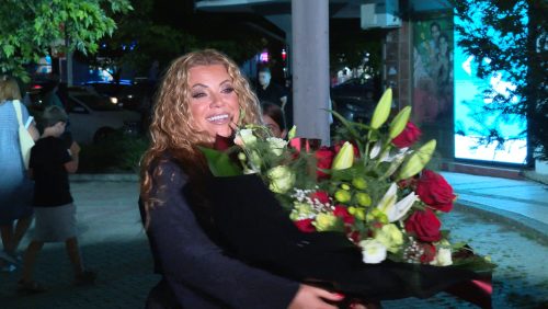 Vedra i nasmejana Indira se pojavila pred početak koncerta, kada joj je uručen veliki buket cveća.
