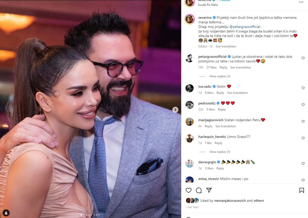 Prva koleginica koja mu je javno čestitala rođendan uz fotografiju koju je podelila na svom Instagram profilu bila je Severina Vučković.