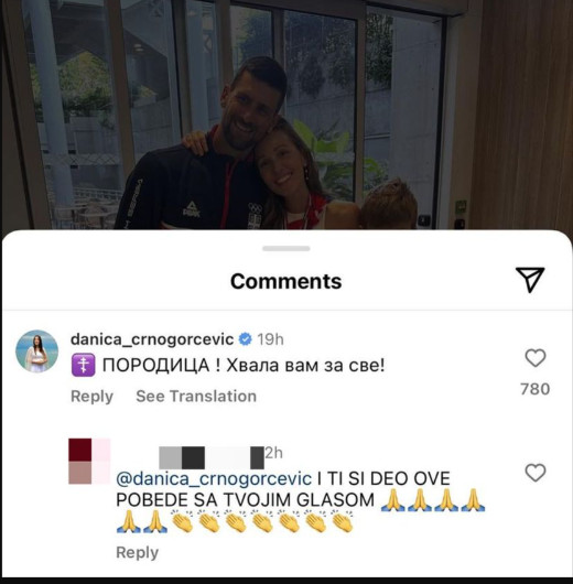 Danica se u jeku njegove pobede više puta oglasila, a ispod objave Jelene Đoković, na kojoj pozira sa članovima porodicom, ostavila je divan komentar.