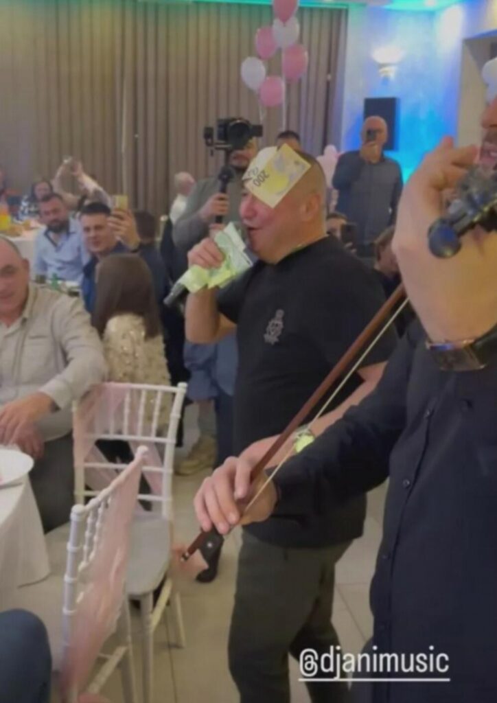 Na snimcima koji kruže društvenim mrežama vidi se kako gosti kite folkera velikim svotama novca koje je u jednom trenutku više nije mogao da drži, pa su počeli da mu ih lepe po čelu.