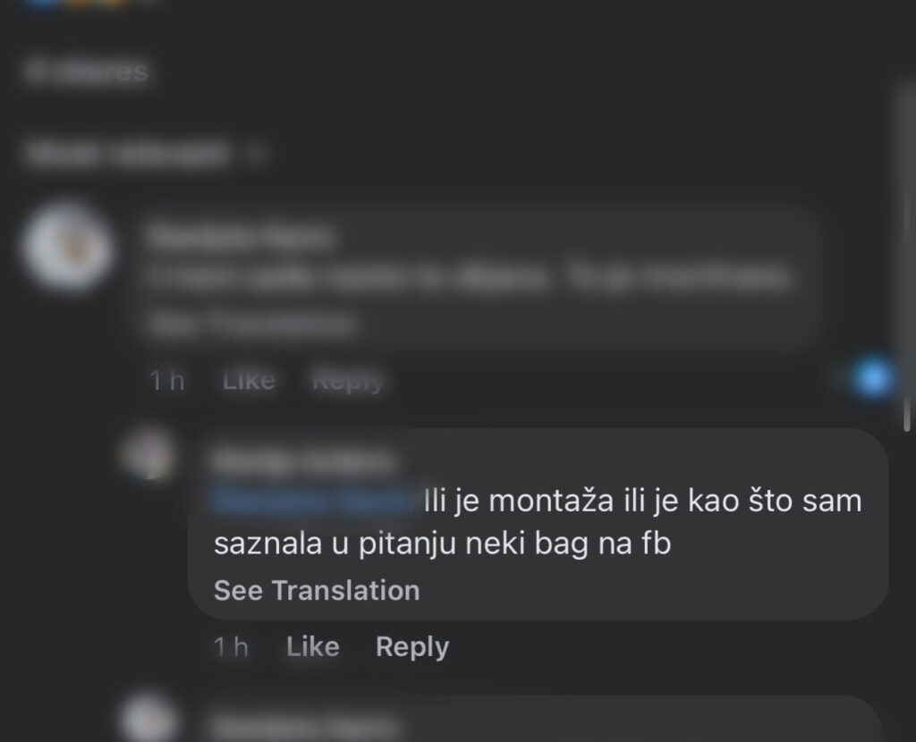 “Ili je montaža ili je kako sam saznala u pitanju neki bag na fejsbuku” .napisala je vlasnica ovog profila i komentarima uz objavu: