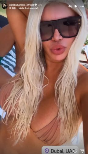 Iako nije otkrila ko joj pravi društvo na odmoru, Dara je objavila i video u kojem pozira u kupaćem kostimu, a u jednom trenutku se naslonila na mušku nogu, što je odmah pokrenulo lavinu komentara.