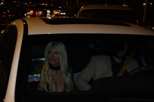 Dara je pozirala ispred fotoreportera sa samopouzdanjem, ističući svoje grudi, dok je njena plava bujna kosa slobodno padala niz ramena, dodajući još više glamura njenom izgledu.