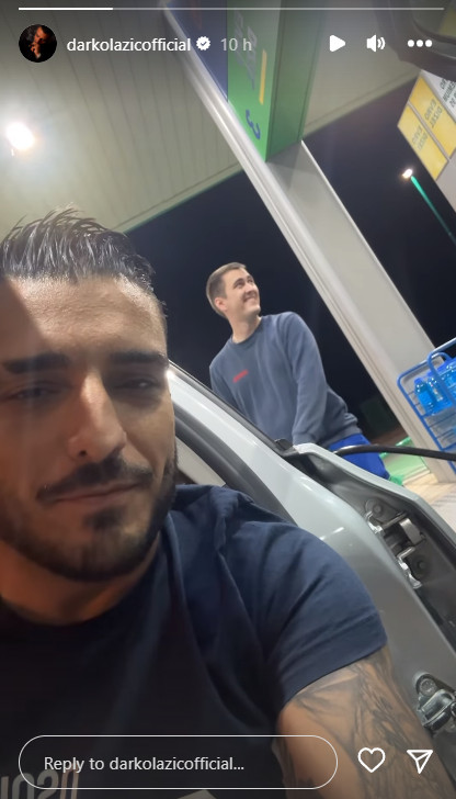 – Brate, reci mi, molim te… Je l’ realno da mene sad žena vozi svuda, jer ja ne smem da vozim? Tebra, ja sad ništa ne mogu, mora svuda ona da me vozi, nema smisla, tebra – vikao je Darko Lazić, dok mu je radnik na pumpi sipao gorivo.