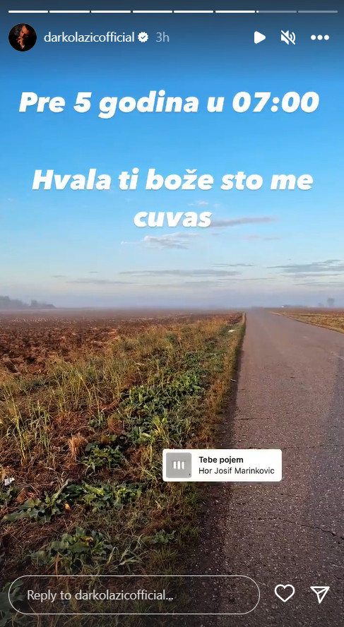 “Pre 5 godina u 07:00 Hvala ti Bože što me čuvaš“, napisao je Darko na fotografiji koju je postavio na svoj profil povodom petogodišnjice nemilog događaja.