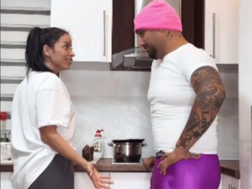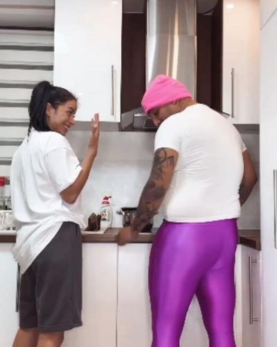 Oni su zapravo zamenili odeću, on je obukao ženine roze helanke, a ona njegov šorts i majicu.