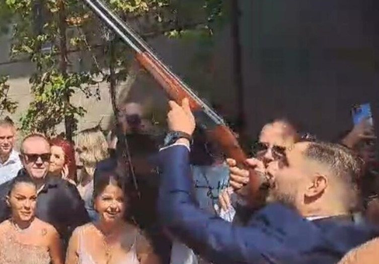 Kao što to običaju nalažu mladoženja je odmah pucao u jabuku.